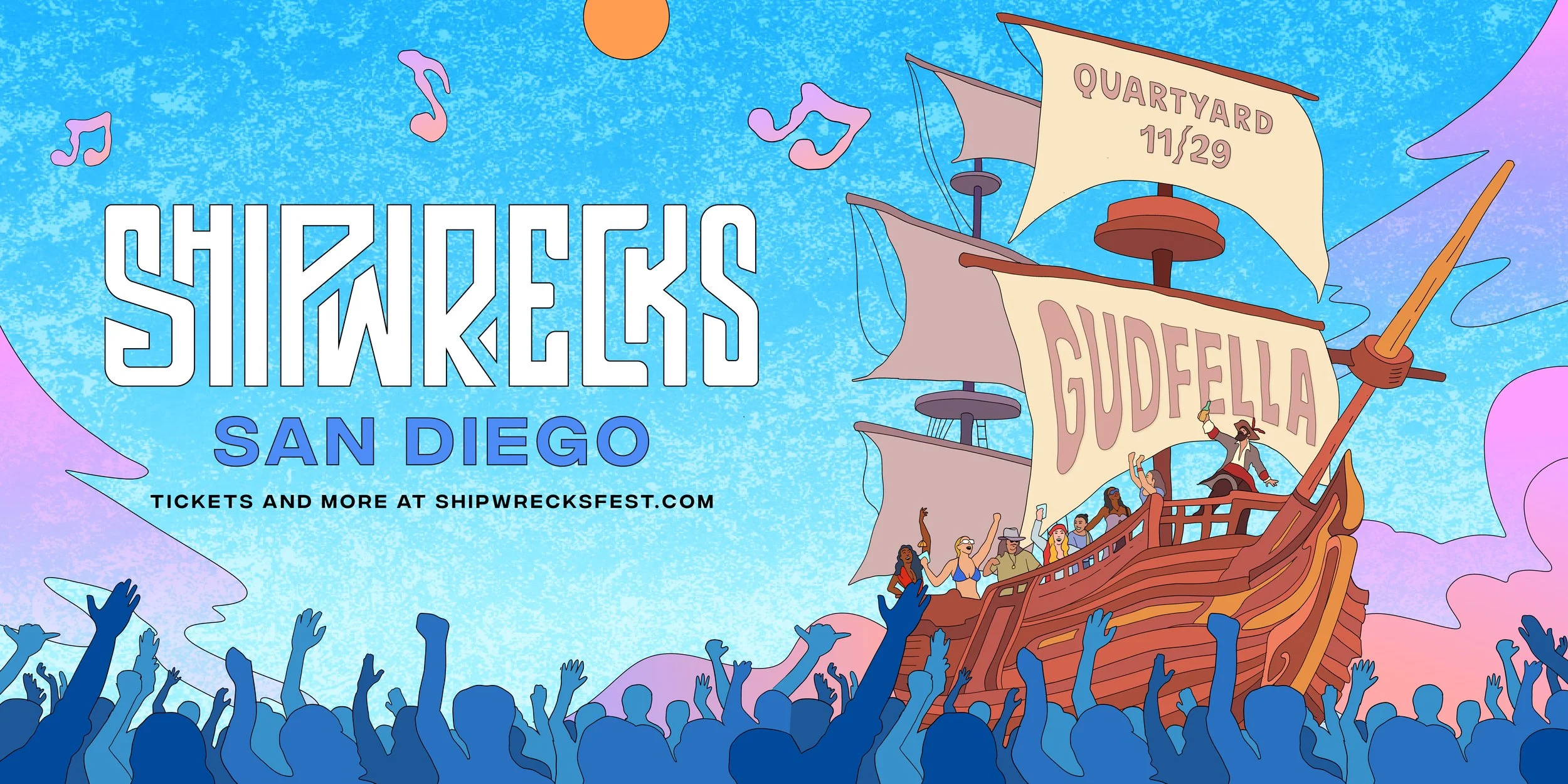 EVENT INFOSET TIMES | VENUE RULES CHECK IN | LAST CALL TICKETS Shipwrecks Fest & Block PartySaturday, November 29thDoors at 4:00 PM SET TIMES The Vibe LISTEN Gudfella The VenueQuartyard1301 Market StSan Diego, CA